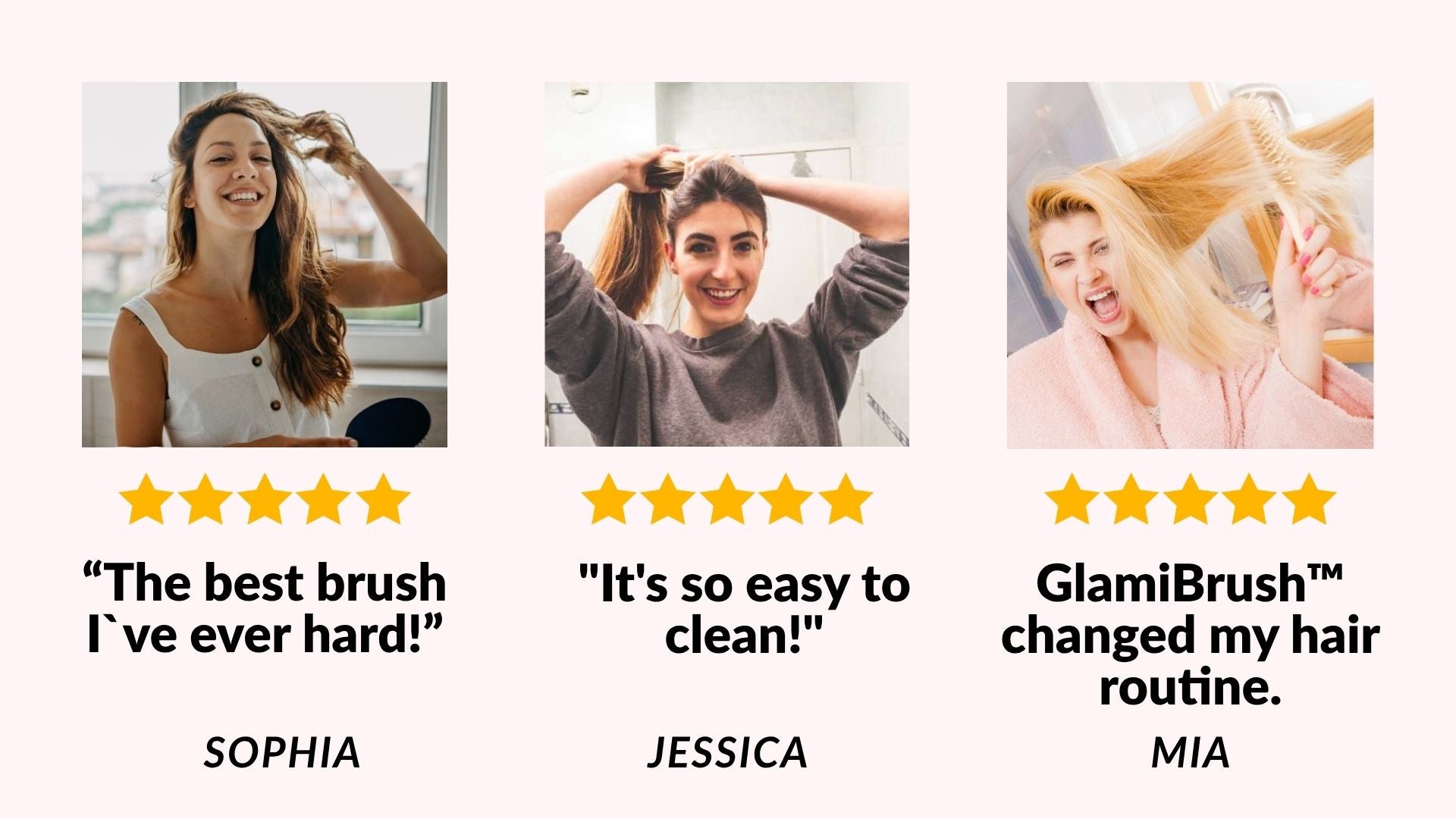 “I have long, thick hair and usually struggle with knots, but GlamiBrush™ handles it effortlessly. Cleaning it takes literally 2 seconds — just press the button and it’s spotless again. Brilliant design!”